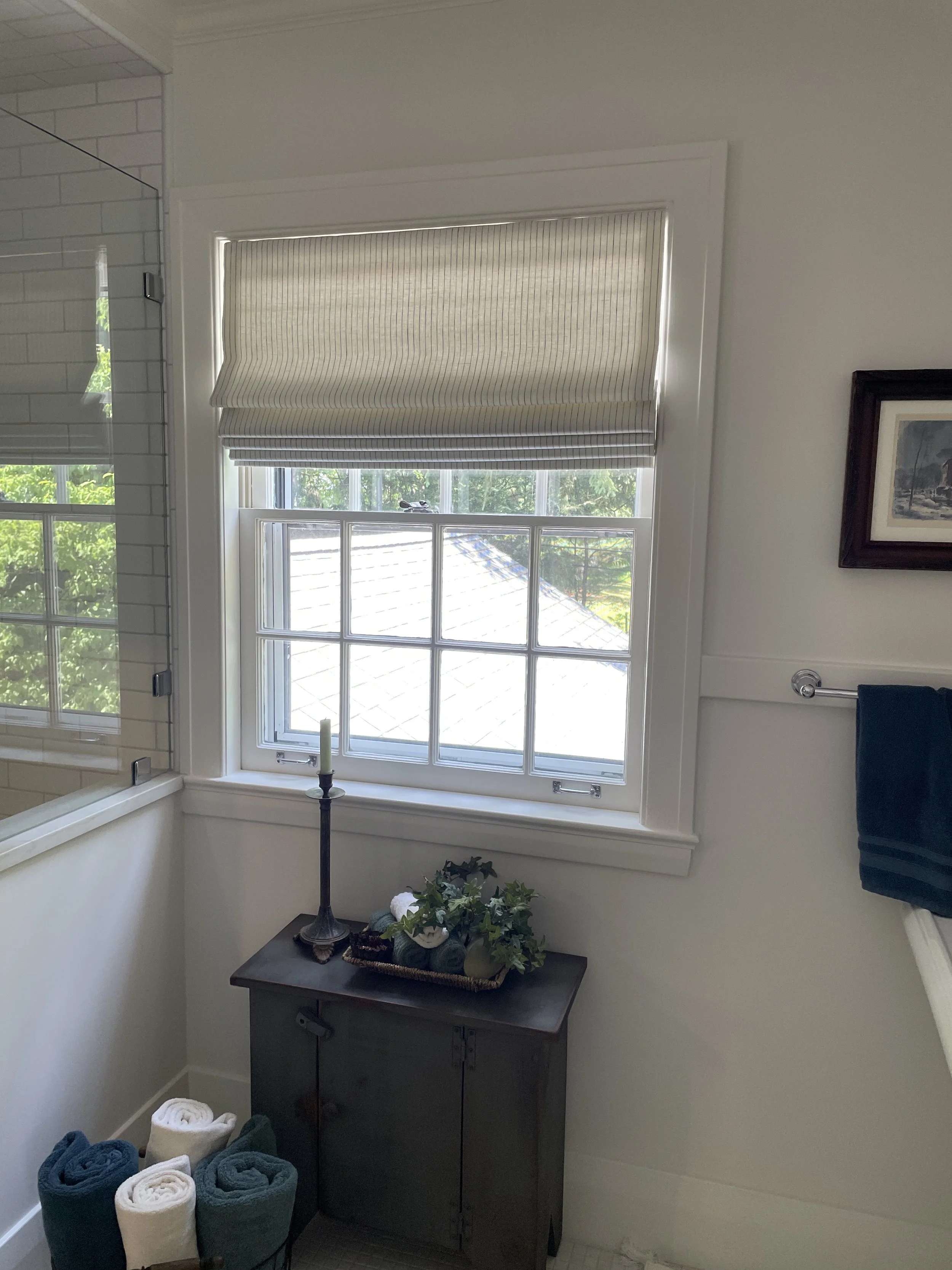 Roman shades can be beautifully structure and precise or relaxed with a lovely smile at the bottom. Whether you want the shades to function or just create a faux look we have plenty of options.